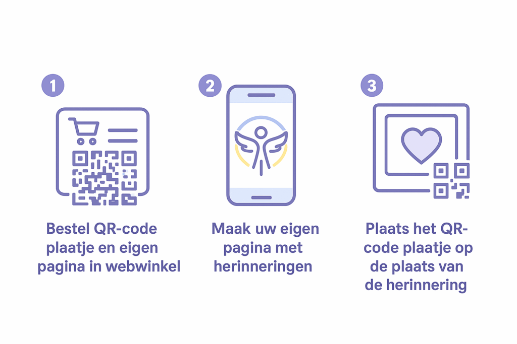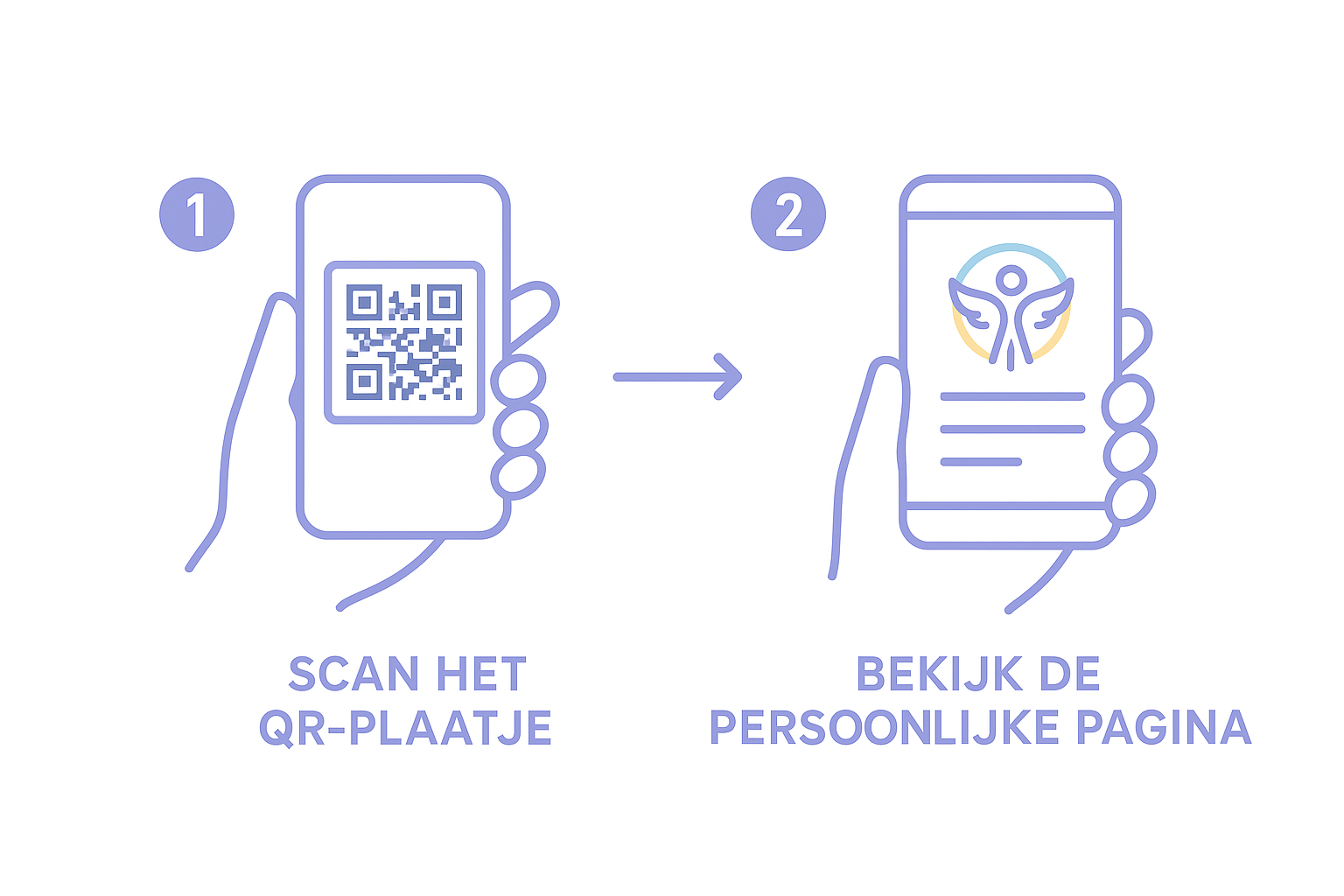 MijnEngelen biedt een moderne, rustgevende omgeving waarin u kostbare herinneringen aan geliefden kunt koesteren en delen, via een gekoppeld QR-code plaatje.